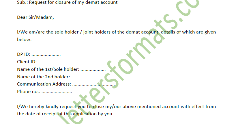 Sample Letter For Closure Deactivation Of Demat Account - The account opening form must be supported by copies of any one of the approved documents to serve as proof of identity (poi) and proof of address trading in the indian stock market needs a demat account, and the money to trade.